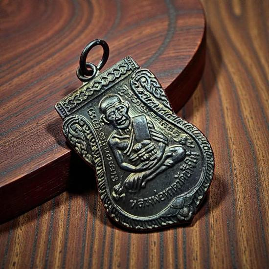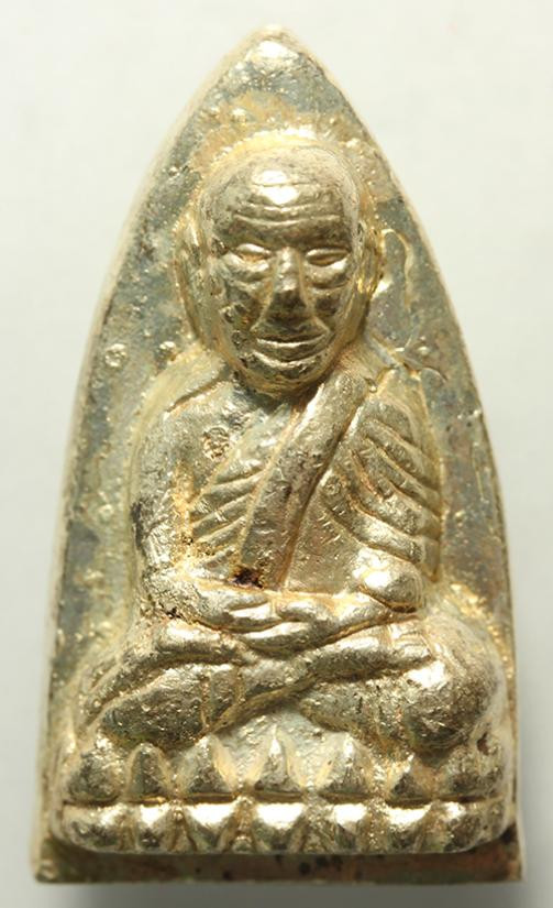 เคาะเดียวแดง หลวงปู่ทวด พิมพ์หน้าเลื่อน รุ่น เจริญพรสรงน้ำ เลข18 เนื้อ บรอนชุบเงินโบราณ |