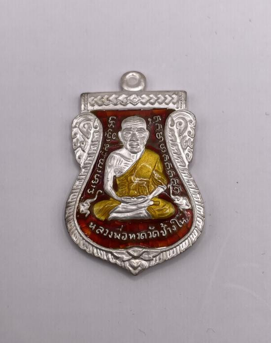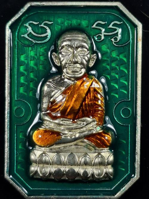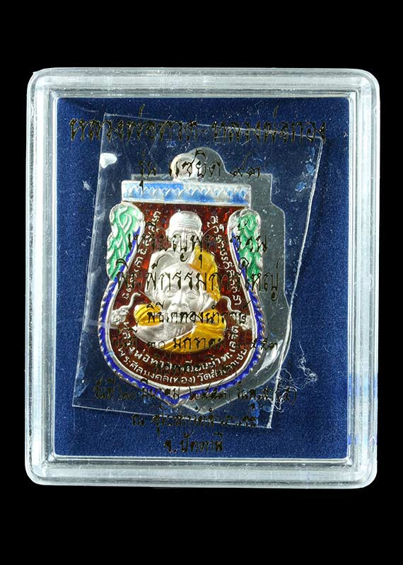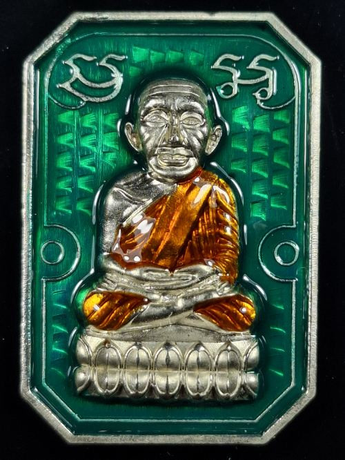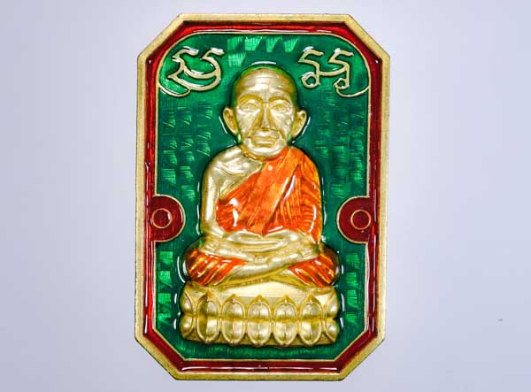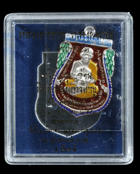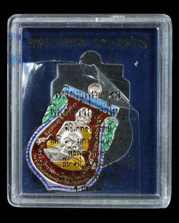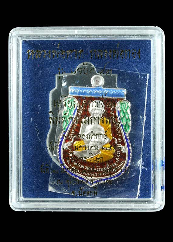 วัดใจ หลวงปู่ทวด หลวงปู่ศิลา เมตตาอธิษฐานจิต รุ่นเลื่อนสมณศักดิ์ เหนือดวง เนื้อทองทิพย์ ลงยา No.77 |