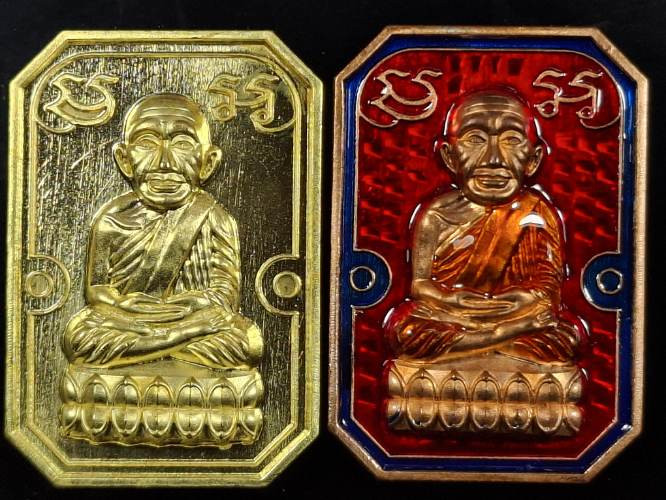 เคาะเดียวแดง เม็ดแตง 2องค์หลวงปู่ทวด รุ่น101ปี เนื้อ ชุบทองลงยาแดง |