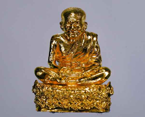 เคาะเดียวแดง หลวงปู่ทวด พิมพ์หน้าเลื่อน รุ่น เจริญพรสรงน้ำ เลข55 เนื้อ บรอนชุบทอง |