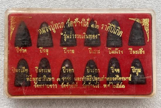 ชุดกล่องหลวงปู่ทวด 12ราศรีปีเกิด รุ่นร่ำรวยเงินทอง พุทธาภิเษก3วัด(วัดทรายขาว วัดช้างให้ วัดบ้านไร่) ปี2541 |