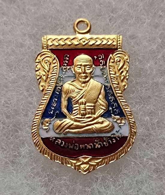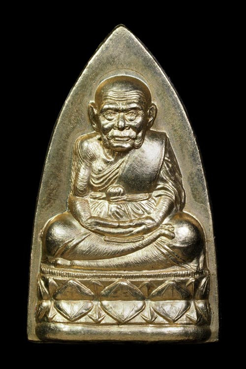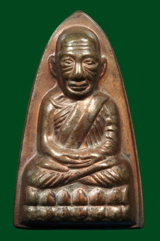พระหลวงปู่ทวดเนื้อหยกแกะ ด้านหลังติดโค้ตทองคำ วัดพะโคะ จัดสร้างโดย สมาคมชาวเพชรบุรี 26 กุมภาพันธ์ 2543 |