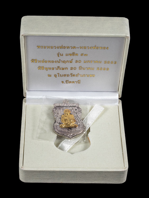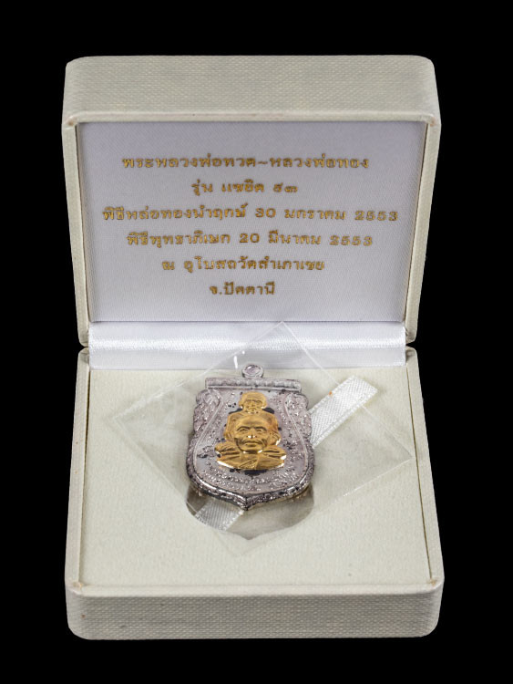 ^_^ คัดสวยแชมป์ ^_^ เหรียญเสมาหลวงปู่ทวด 100 ปี (( รุ่นเสาร์ 5 มหามงคล )) ปี 2555 เนื้ออัลปาก้า ผิวน้ำทอง สภาพสวยเดิมๆพร้อมกล่อง ส่งพร้อมใบประกาศที่ 1 สวยๆแบบนี้ต้องลุยครับาครับ!! |