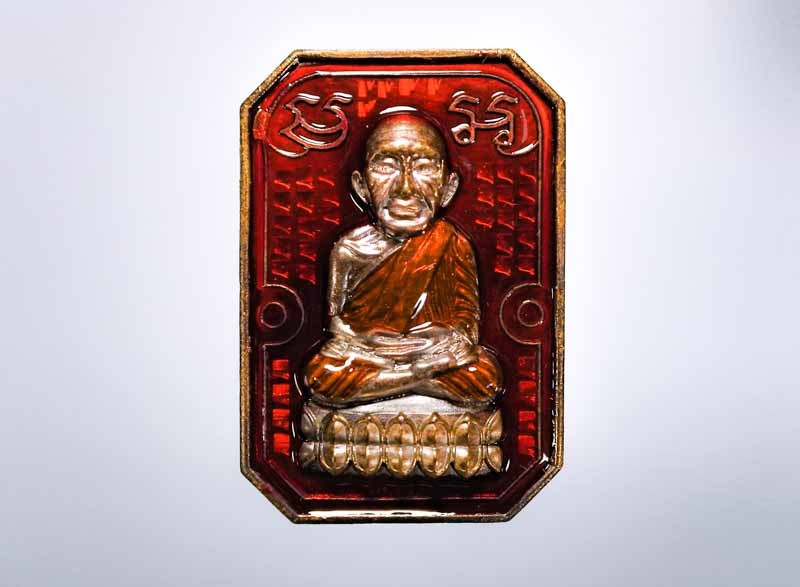 เคาะเดียวแดง เม็ดแตง หลวงปู่ทวด รุ่น100ปี อาจารย์ทิม เนื้อเงินลงยาสีเเดง |