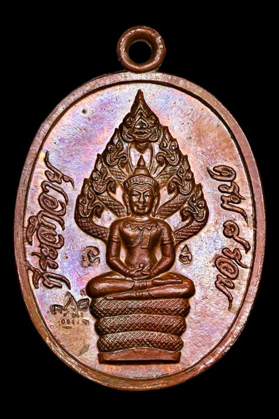 วัดใจ เหรียญพุทธโสธรหลวงปู่ทิม วัดละหารไร่ ปี 2518 เนื้อทองแดง บล็อกเสาอากาศ นิยม สภาพผิวแดงเดิมๆ |