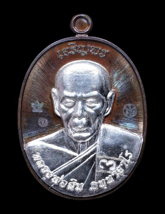 เหรียญเจริญพร (บน) เนื้อนวะหน้ากากเงิน หลวงพ่อสิน วัดละหารใหญ่ บ้านค่าย จังหวัดระยอง แดงเคาะแรก |
