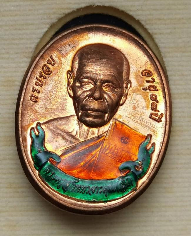เหรียญหลวงพ่อสิน ที่ระลึกผูกพัทธสีมา เนื้อทองแดงลงยาจีวร ปี2558 |