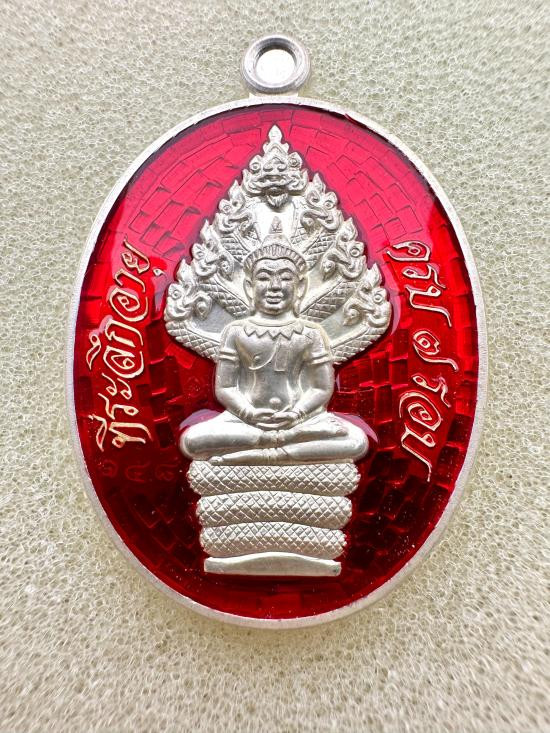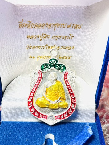 หลวงพ่อสิน เหรียญปรกไตรมาส อายุ ๗ รอบ ๘๔ ปี ปี๕๕ เนื้อเงิน ลงยาสีแดง หมายเลข 158 สร้าง ๒๘๕ เหรียญ |