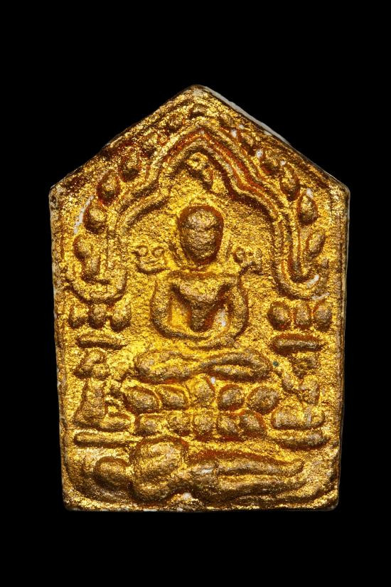 พระขุนเเผนผงพรายกุมารผ้าป่าปี 2546 พิมพ์เล็กเนื้อเหลืองตะกรุดทองคำ+เส้นเกษา 1 ใน 90 องค์ |