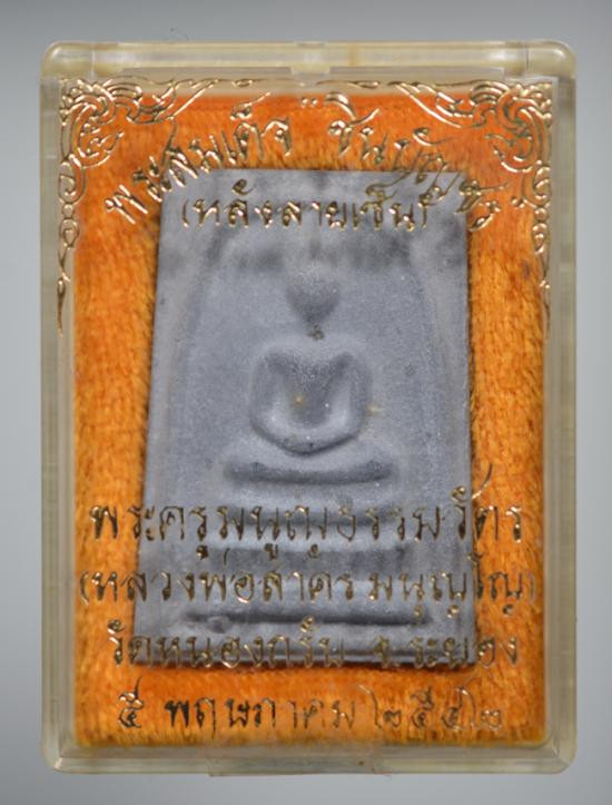 พระขุนแผนบ้านค่ายพรายจินดามณีพิมพ์ใหญ่ หลวงพ่อสิน วัดละหารใหญ่ เนื้อดำทาทองตะกรุดทองคำคู่ โรยพลอย ปี62 ชุดกรรมการ |