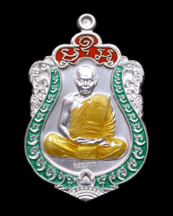 เหรียญเสมาผูกพัทธสีมา ปี 2558 เนื้อเงินลงยา กรรมการ หลวงพ่อสิน วัดละหารใหญ่ จ.ระยอง พร้อมกล่อง แดงเคาะแรก |