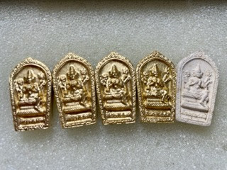 เหรียญพระเจ้าห้าพระองค์ หลังยันต์ดวงสุกิตติมา ปี 2522 หลวงปู่โต๊ะ หลวงพ่อสุด พ่อท่านแก่น พ่อท่านคลิ้ง ฯ ปลุกเสก(กะไหล่ทอง) |