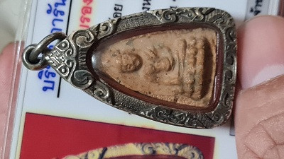 สมเด็จสุคโต ปี2517 วัดบวรฯ กทม เลี่ยมเงินลงยาสั่งทำ สวยๆ พร้อมบัตรรับรอง |