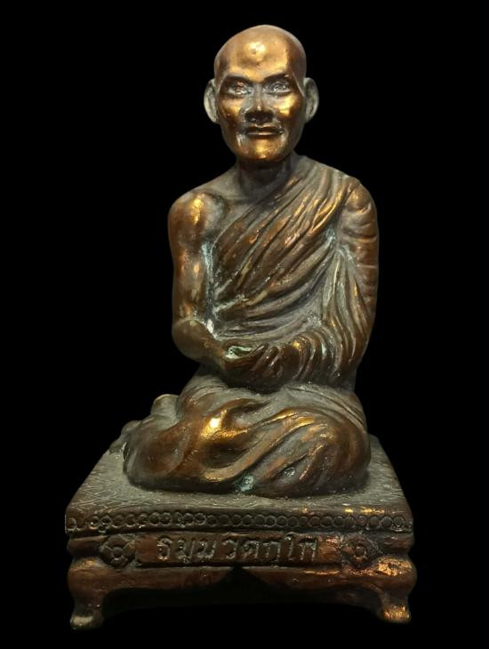 พระรูปเหมือน ท่านเจ้าคุณนรฯ วัดเทพศิรินทร์ฯ นั่งพับเพียบ อุดผงใต้ฐาน ซิลิก้าบุแผ่นทองแดง ปี ๒๕๒๐ ขนาด 3 นิ้ว |