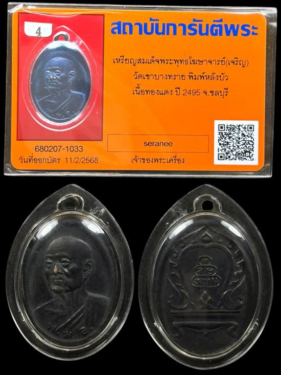 เหรียญโภคทรัพย์ ท่านเจ้าคุณนรฯ วัดเทพศิรินทร์ เนื้อนวะ พิมพ์ใหญ่ ปี ๒๕๑๓ สวยๆ บล็อคนิยมตาสองชั้น + บัตรรับรอง G-Pra |