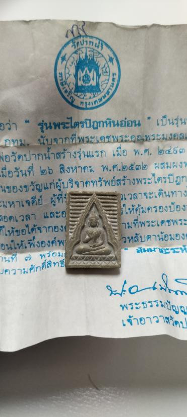 """ วัดใจ เคาะแรกแดง """ พระของขวัญ วัดปากน้ำ กทม. รุ่น 4 เนิ้อผง ปี 2514 |