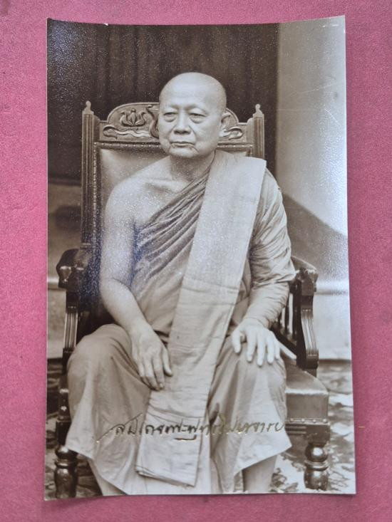 รูปถ่ายอัดกระจกพระอาจารย์เบ๊นซ์ วัดราชาธิวาส ฉากซีเปียหลังจารหมึก |