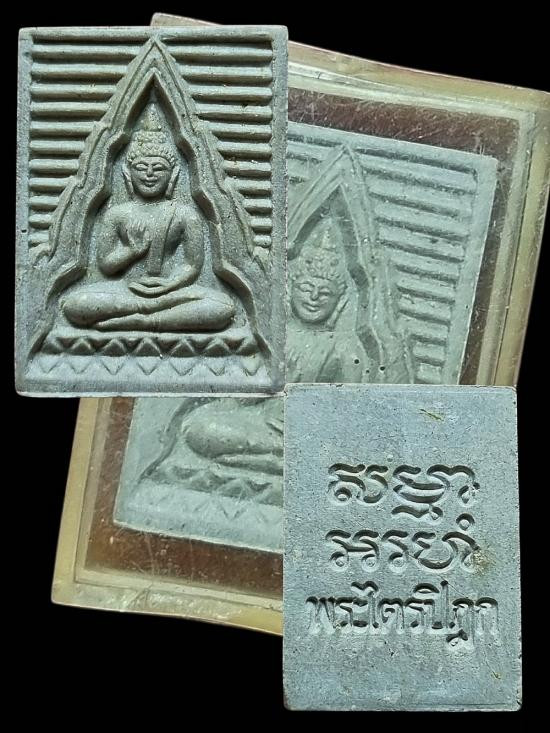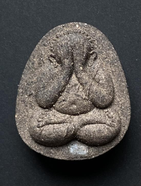 พระพิมพ์หลวงพ่อโต วัดบางกระทิง (เนื้อตะกั่ว) หลวงพ่อชำนาญ วัดบางกุฎีทอง ปี 2553 ตอกโค้ตที่ด้านหลัง |