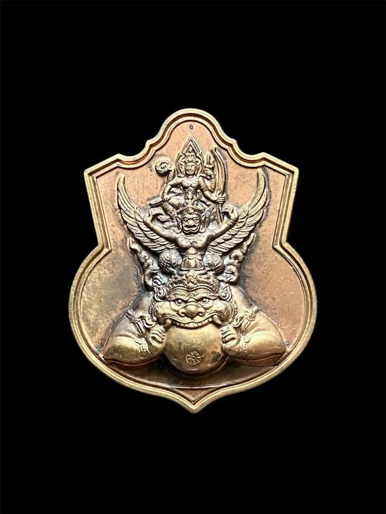 พระนารายณ์ทรงครุฑประทับพระราหู ปี48 เจ้าคุณธงชัย วัดไตรมิตรวิทยาราม เนื้อผงปิดทอง ฝังยันต์ดวง พิมพ์ใหญ่ พร้อมกล่องเดิม |