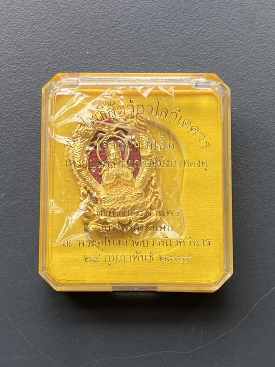 เคาะเดียวแดง เจ้าแม่กวนอิม รุ่น ทรงประทานพร เลข100 เนื้อ ชุบทองลงยาแดง |