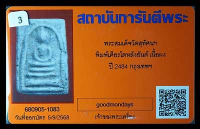 พระสมเด็จหลังยันต์ยอดพระกัณฑ์ไตรปิฎก หลวงพ่อถาวร วัดปทุมวนาราม กทม |