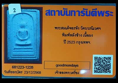 สมเด็จอรหังหลังช้าง ปี2523 วัดบวรนิเวศวิหาร กทม ลป.ดูลย์ ,ลป.โต๊ะ ร้วมปลุกเสก |
