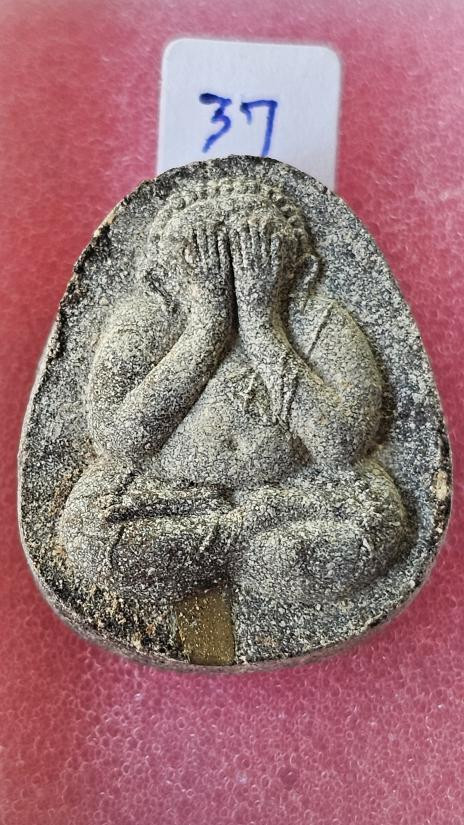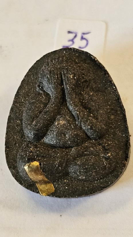 พระปิดตา หลวงปู่วิเวียร วัดดวงแข พิมพ์น้ำเต้า เนื้อผงเกสร พ.ศ.2528 (หลังปั้มยันต์หมึก) |