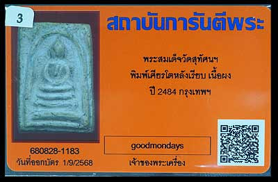 สมเด็จอินโดจีน พิมพ์แซยิดปรกโพธิ์ ข้างยันต์ ปี2484 วัดสุทัศน์ กทม. |