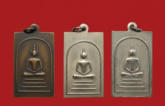 เหรียญสมเด็จโต "พิมพ์สี่เหลี่ยม" เนื้ออัลปาก้า (หลวงปู่นาค วัดระฆังฯ สร้างประมาณปี 2495) มี 3 เหรียญ |