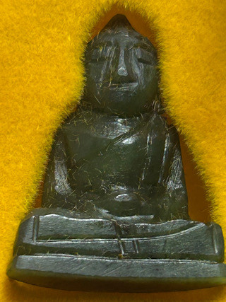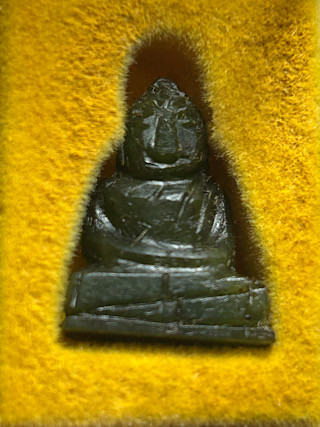 พระแก้วพิมพ์เล็กเนื้อใบตอง หลังโรยเกษาและผงตะไบทองครับ |