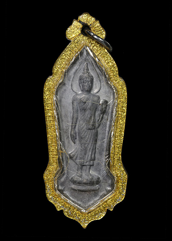 พระพุทธสิหิงค์พิมพ์เล็กเจ้าคุณนร เนื้อใบตองหลังโรยเกษาและผงตะไบทองครับ |