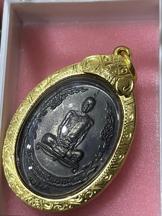 หลวงปู่โต๊ะ ล็อคเก็ต รุ่นปลอดภัย หลังยันต์ตรี มวลสารเก่า หลังใบลาน ฉากทอง ปี 65 |