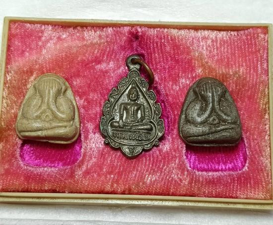 ชุด 3 องค์...พระผงรูปเหมือน + พระปิดตา + พระสมเด็จ หลังยันต์นะ เนื้อผงพุทธคุณ ฝังตะกรุด รุ่นทรัพย์รุ่งโรจน์ ปี 2534 วัดประดู่ฉิมพลี มีกล่องวัด |