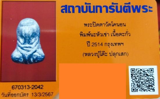พระปิดตาวัดโคนอน พิมพ์นะหัวเข่า เนื้อตะกั่ว ปี 2514 ลป.โต๊ะปลุกเสก |