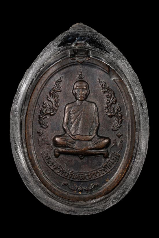 เหรียญหลวงปู่โต๊ะ วัดถ้ำสิงโตทอง จ.ราชบุรี รุ่นแรก ปี 2521 เนื้อทองแดงรมดำ (เคาะเดียวแดง) |