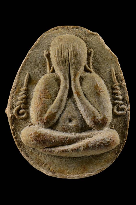 พระปิดตาพิมพ์ตุ๊กตาใหญ่ เนื้อผงใบลาน วัดประดู่ฉิมพลี ธนบุรี |