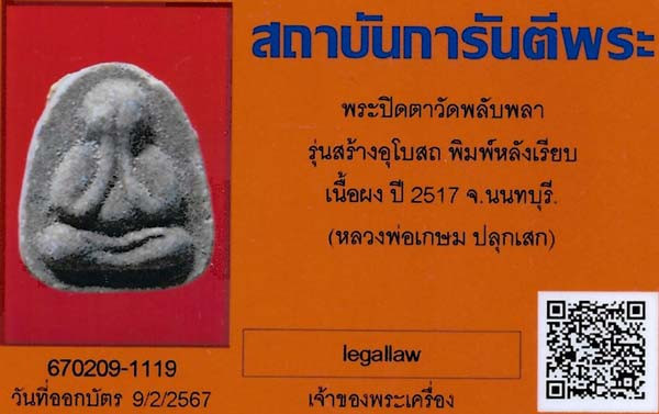 พระปิดตาหลวงปู่โต๊ะ พิมพ์หลังยันต์ตรี วัดศาลาครืน เนื้อโลหะ ปี 2522 ตอกโค้ด |