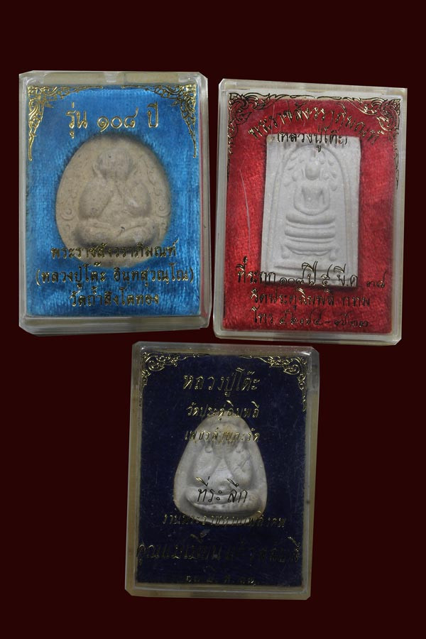 เคาะเดียวแดง / พระชุดไตรภาคี หลวงปู่เอี่ยม วัดโคนอน หลวงปู่โต๊ะวัดประดู่ฉิมพลี เจ้าพิธี ปี 2515 พร้อมกล่อง |