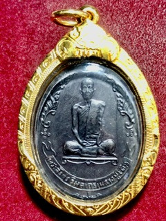 เหรียญหลวงปู่โต๊ะหลังพัดยศพิมพ์อุ้มดาว เนื้อทองแดงรมดำ ปี2518 เลี่ยมทอง |