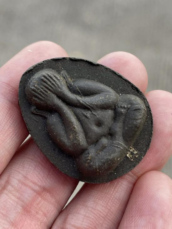 พระปิดตานะหัวเข่า หลวงปู่เอี่ยม วัดหนัง ออก วัดโคนอน ธนบุรี กรุงเทพมหานคร ปี 2514 เนื้อชินตะกั่ว (หลวงปู่โต๊ะ เจ้าพิธี) |
