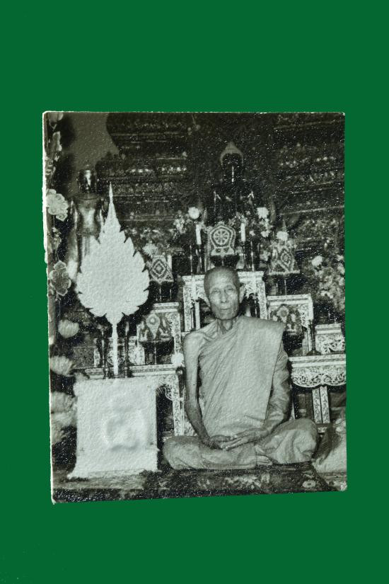 บัตรการันตี...เคาะแรกแดง ปู่โต๊ะ พิมพ์ใบโพธิ์ หลังยันต์ตรี |