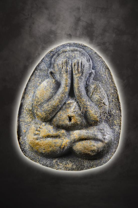 พระปิดตากนกข้าง หลวงปู่โต๊ะ ปี 2535 ออกวัดถ้ำสิงโตทอง เนื้อผงใบลาน พร้อมกล่องมีคราบปลวก |