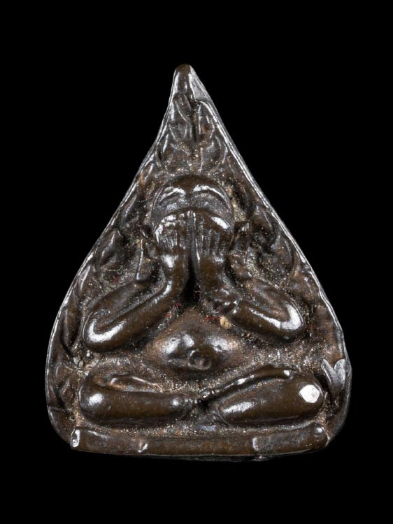 พระปิดตาหลวงปู่โต๊ะวัดประดู่ฉิมพลี พิมพ์ใบโพธิ์ หลังยันต์นะมหาเศรษฐี เนื้อนวโลหะ ปี 2523 |