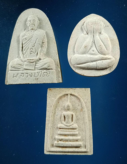 พระชุดไตรรัตน์ ประกอบด้วย พระนางพญา/พระรอด/พระปิดตา เนื้อชินตะกั่ว หลวงปู่โต๊ะปลุกเสก ปี ๒๕๑๔ |