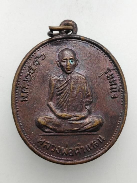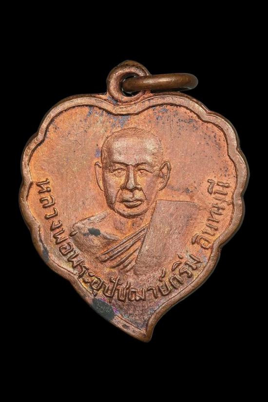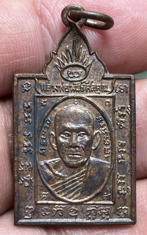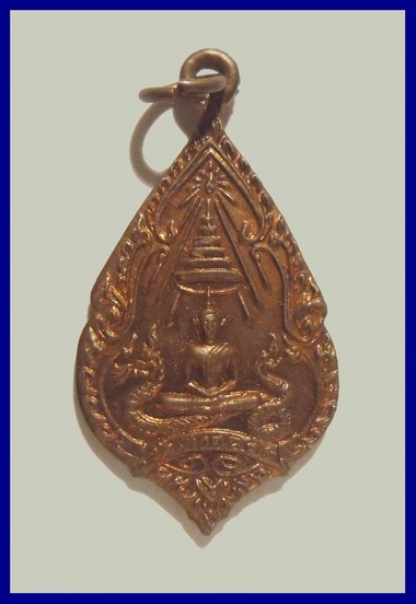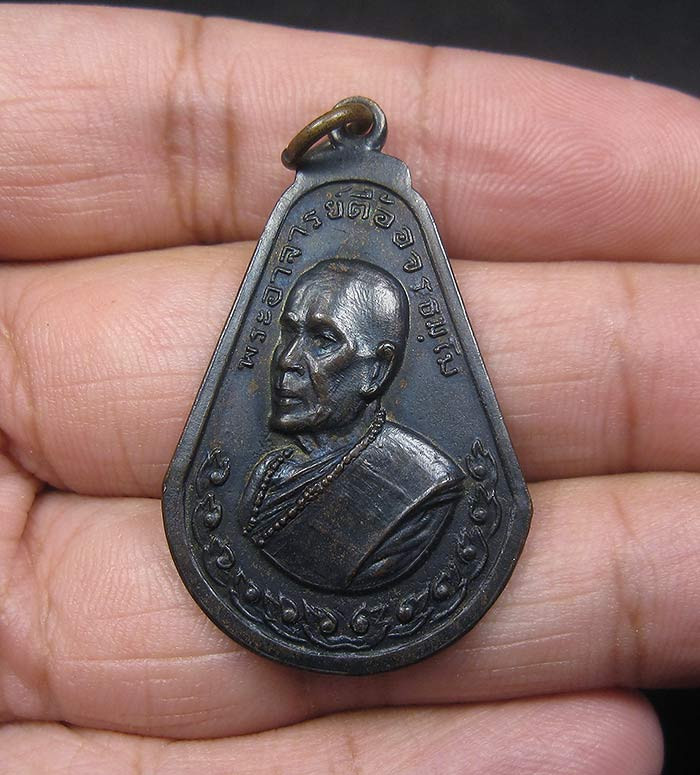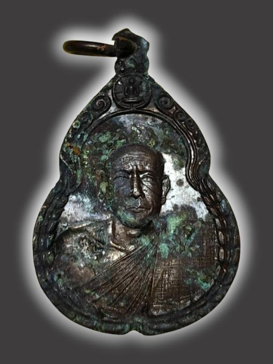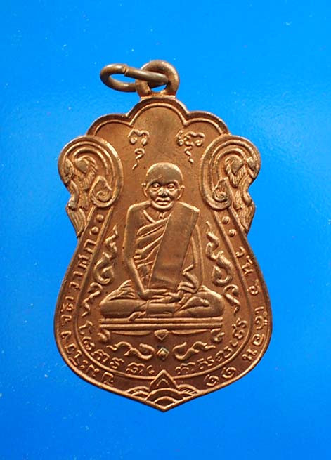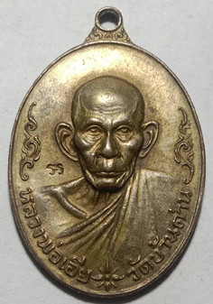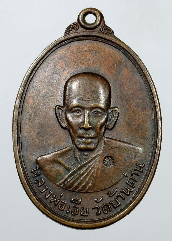 เหรียญหยดน้ำ หลวงพ่อเอีย วัดบ้านด่าน จ.ปราจีนบุรี รุ่น 8 หลังพระพุทธ ปี 2514 เนื้อทองแดงผิวไฟ |