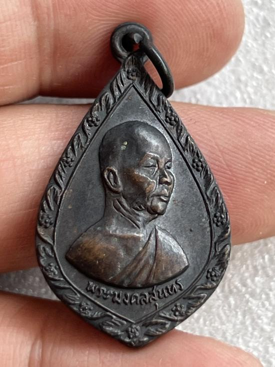 เหรียญกลม หลวงพ่อจง วัดหน้าต่างนอก พิมพ์หลังสิงห์ (๓ ใหญ่) เนื้อทองแดง ปี 2502 พร้อมบัตร |