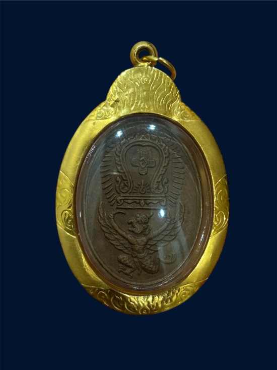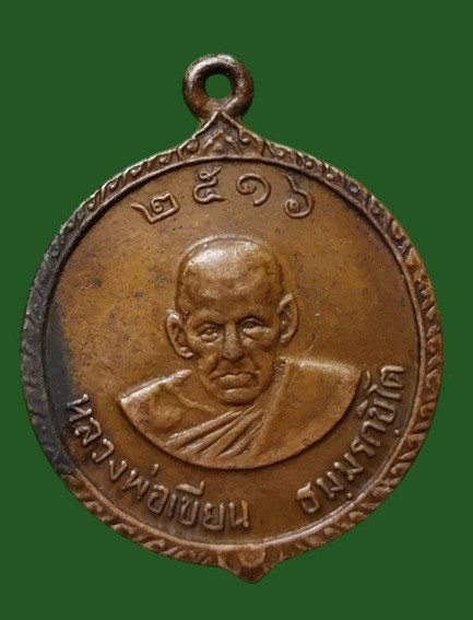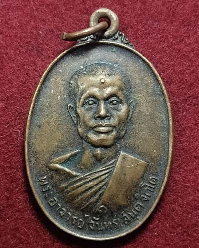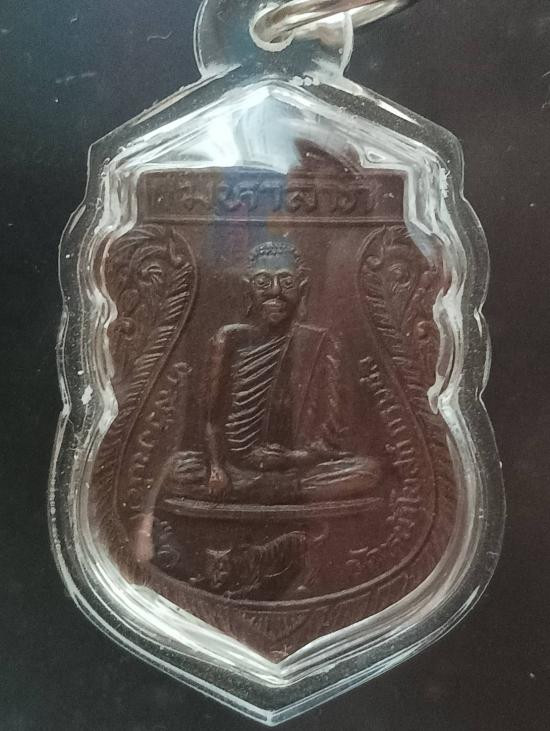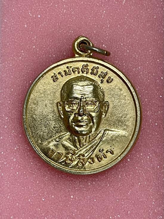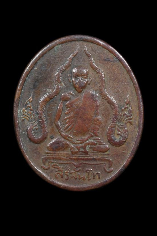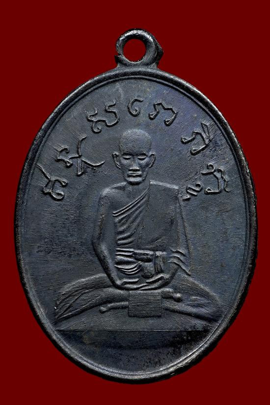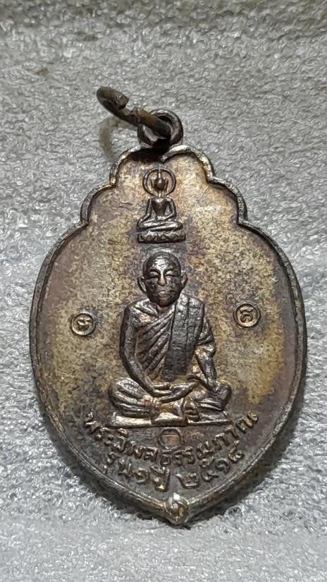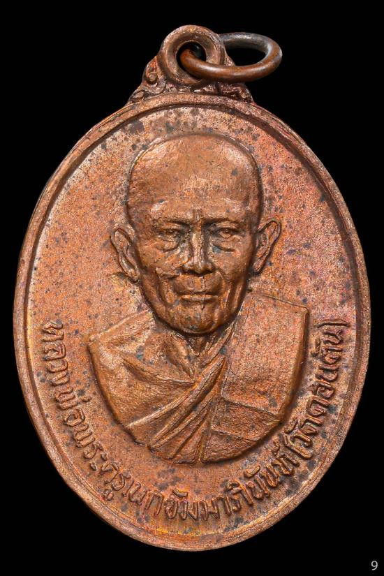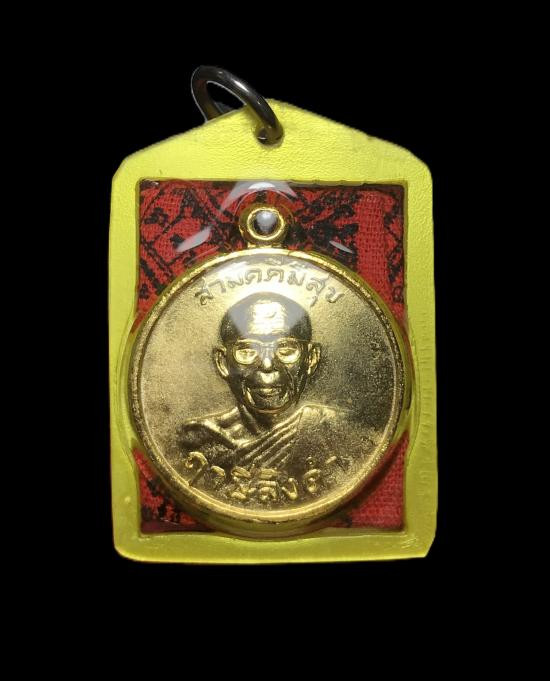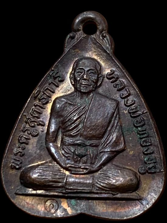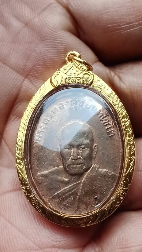 เหรียญหลวงพ่อทองศุข ออกวัดมฤคทายวัน ปี 2498 เนื้อทองแดงผิวไฟ หลังติดครั่ง เลี่ยมทอง |