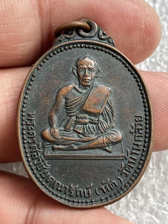 เหรียญหลวงพ่อผาด วัดไร่ รุ่นแรก พิมพ์บล็อกแตก เนื้อทองแดง ห่วงเดิม ปี2519 จ.อ่างทอง + บัตรG-pra สภาพเดิมค่ะ |