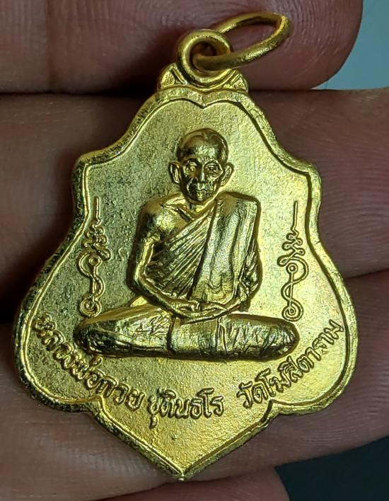กะไหล่ทอง-150-เหรียญรุ่น2หลวงปู่ธูป วัดแคนางเลิ้ง(วัดสุนทรธรรมทาน) ที่ระลึกในงานเสด็จพระราชดำเนินทรงยกช่อฟ้าอุโบสถ พศ. 2518 |