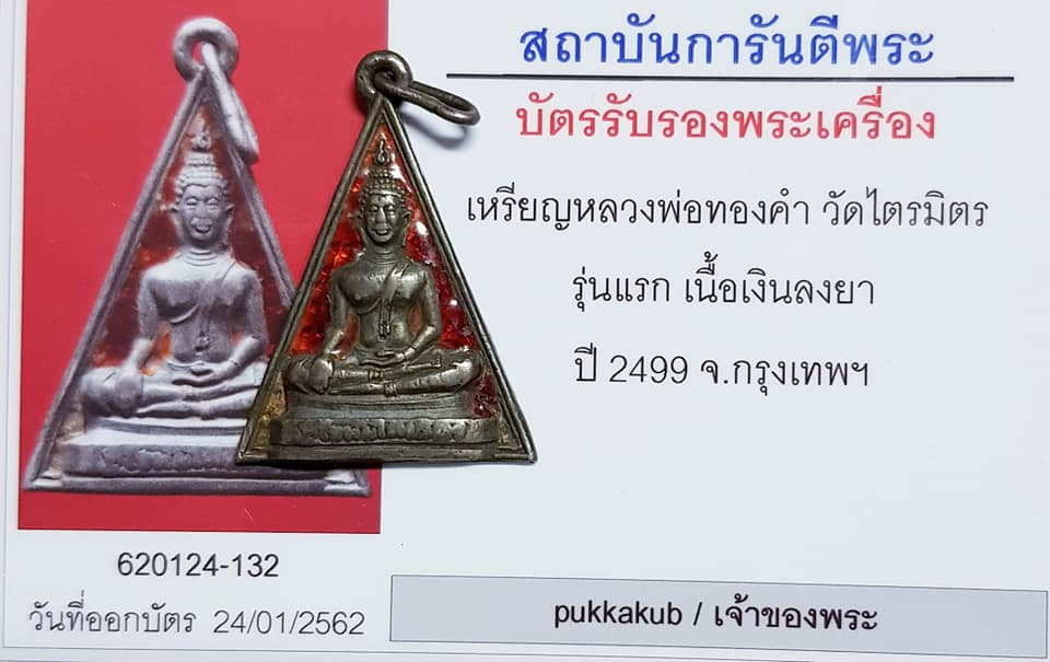 เหรียญหลวงพ่อทองคำ วัดไตรมิตร รุ่นแรก เนื้อเงินลงยา ปี 2499 + บัตรรับรอง G-PRA *ของแท้ๆหายากมาก* เคาะเดียวขั้นต่ำครับ |